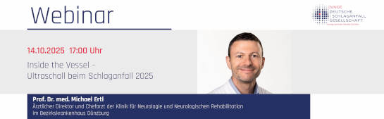 Nicht verpassen! Am Dienstag, den 14. Oktober gibt Prof. Michael Ertl in einem einstündigen Webinar der Jungen DSG Einblicke in die Möglichkeiten der Sonografie rund um den Schlaganfall.