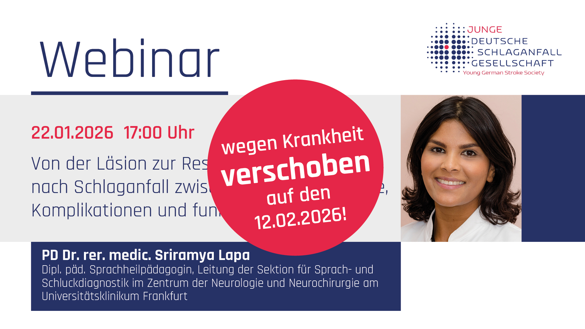 Am Donnerstag, den 12. Februar spricht PD Dr. Sriramya Lapa, Sprachheilpädagogin am Universitätsklinikum in Frankfurt über Dysphagien nach Schlaganfall. Das Webinar ist ein kleiner Vorgeschmack auf die Stroke Unit Winter School im Februar…